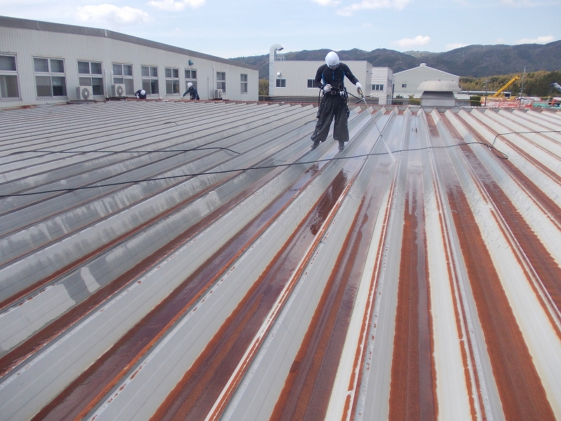 今回は山口菓子DC様の工場屋根に遮熱・断熱塗料「クールサーム」を塗装させていただきました。