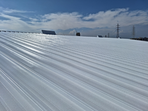 遮熱塗料「クールサーム」を屋根に施工することで、夏場の過酷な太陽熱を反射し、屋根表面温度の上昇を抑えます。これにより、建物内の温度上昇を抑制し、従業員の熱中症リスクを軽減。快適な作業環境を実現します。