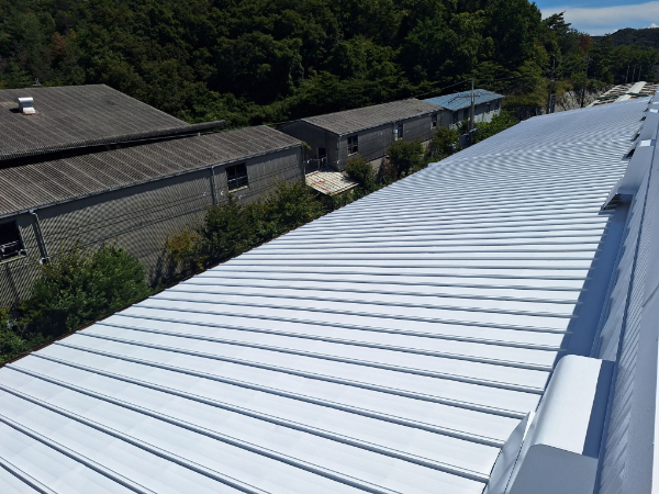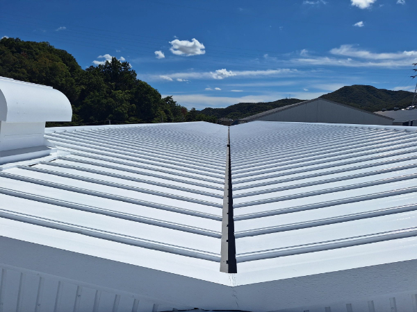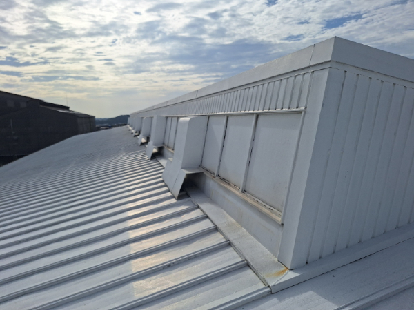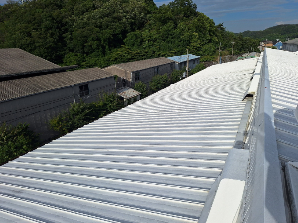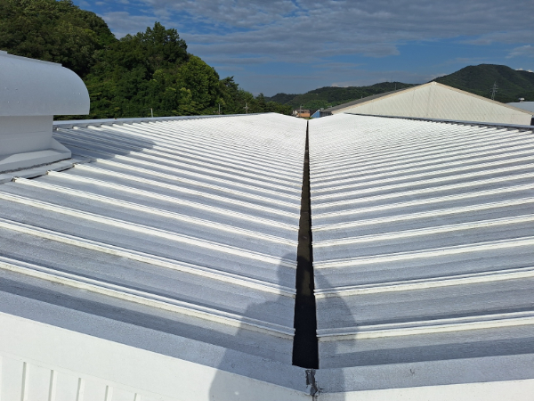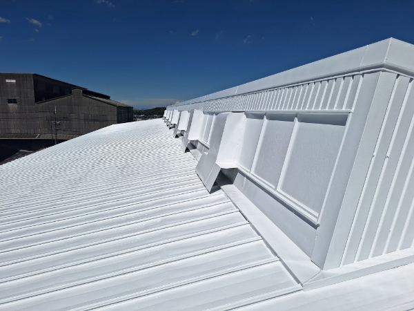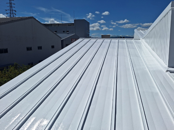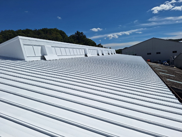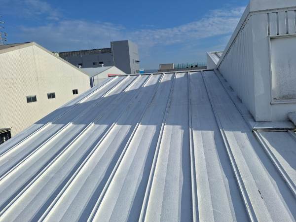 遮熱塗料「クールサーム」を工場・倉庫・事務所の屋根に施工することで、夏場の過酷な太陽熱を反射し、屋根表面温度の上昇を抑えます。これにより、工場・倉庫・事務所内の温度上昇を抑制し、従業員の熱中症リスクを軽減。快適な作業環境を実現できます。