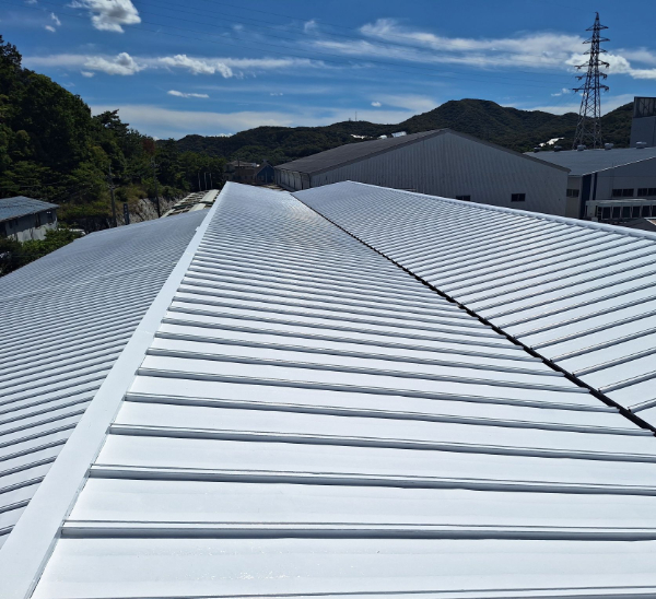 遮熱塗料「クールサーム」を工場・倉庫・事務所の屋根に施工することで、夏場の過酷な太陽熱を反射し、屋根表面温度の上昇を抑えます。これにより、工場・倉庫・事務所内の温度上昇を抑制し、従業員の熱中症リスクを軽減。快適な作業環境を実現できます。