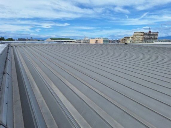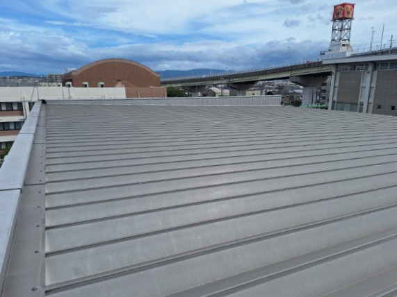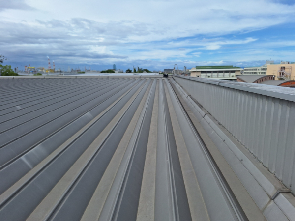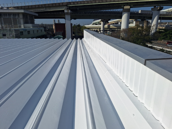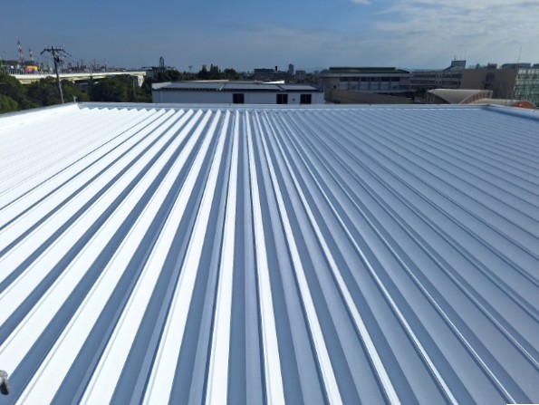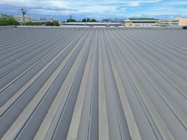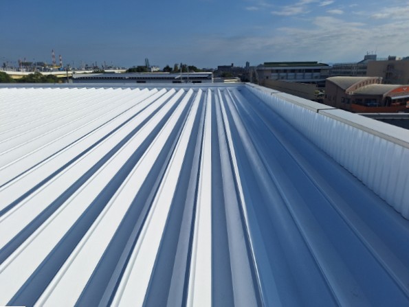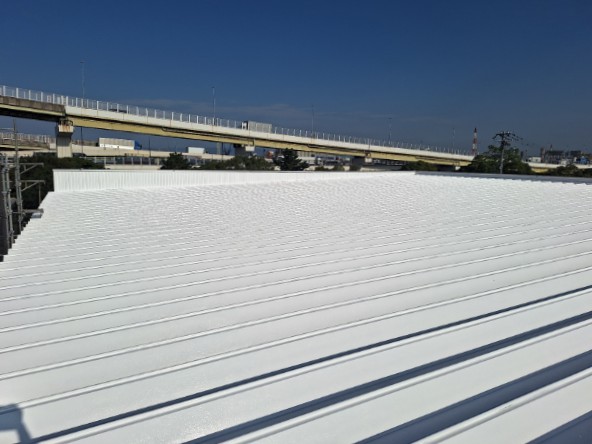 遮熱塗料「クールサーム」を工場・倉庫・事務所などの屋根に施工することで、夏場の強い日射を反射し、屋根表面温度の上昇を抑えます。