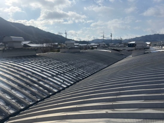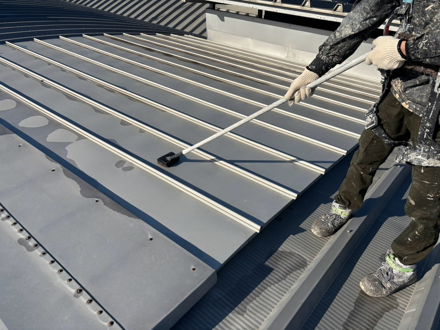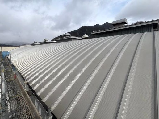 遮熱塗料「クールサーム」を工場・倉庫・事務所などの屋根に施工することで、夏場の強い日射を反射し、屋根表面温度の上昇を抑えます。