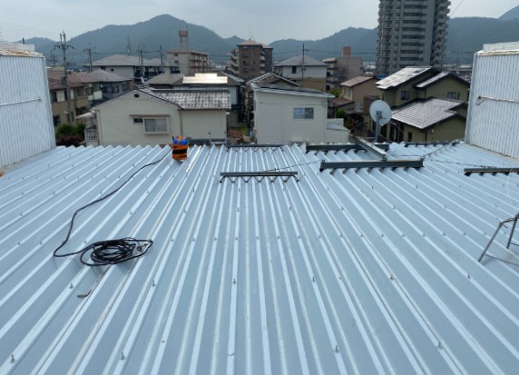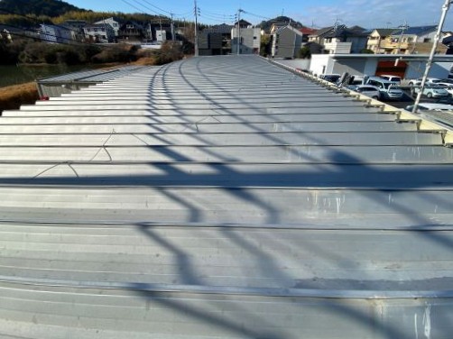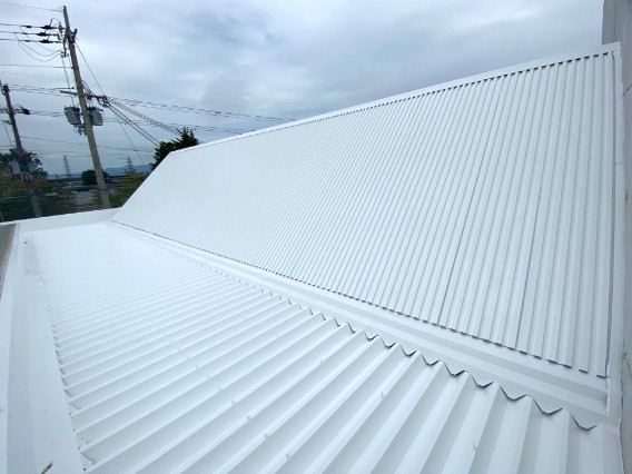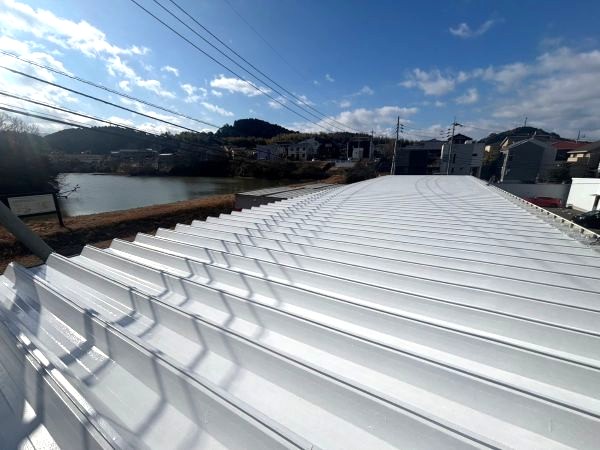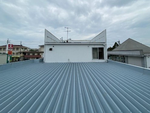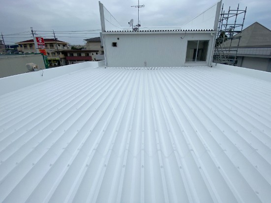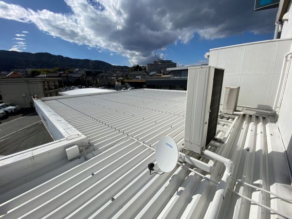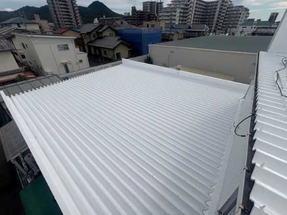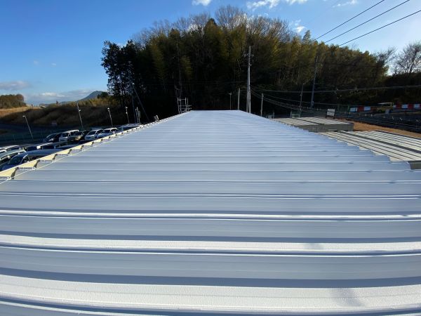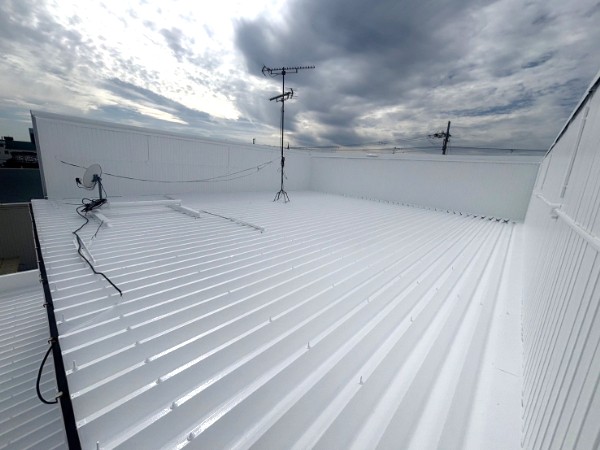遮熱塗料「クールサーム」を工場・倉庫・事務所などの屋根に施工することで、夏場の強い日射を反射し、屋根表面温度の上昇を抑えます。
