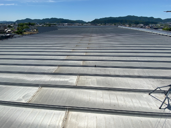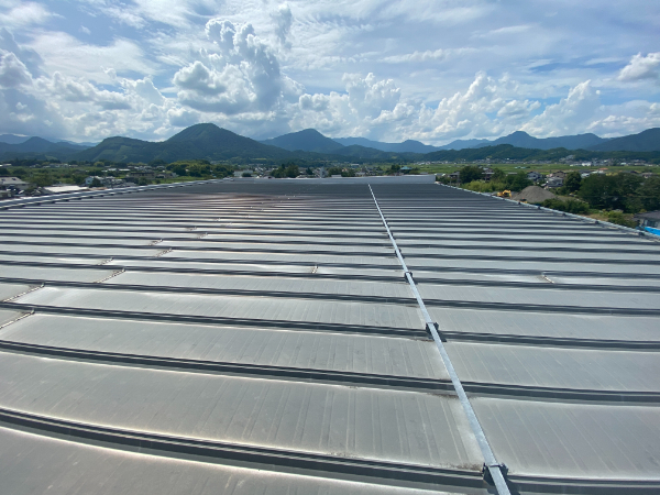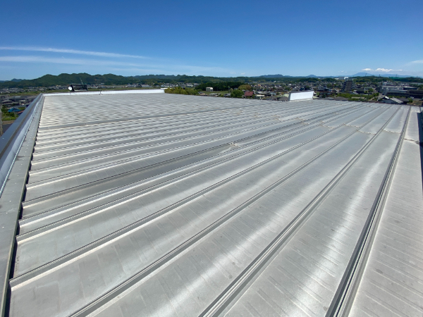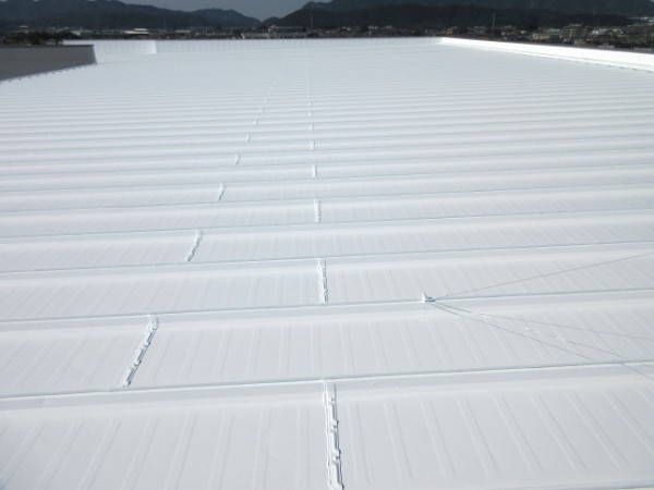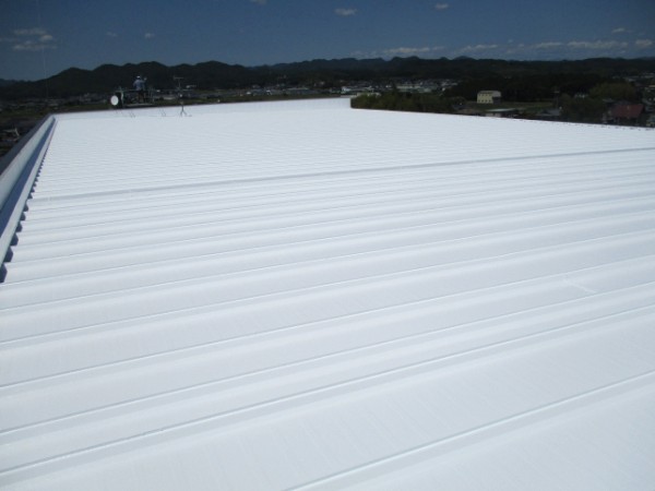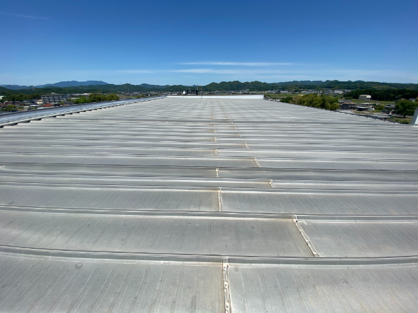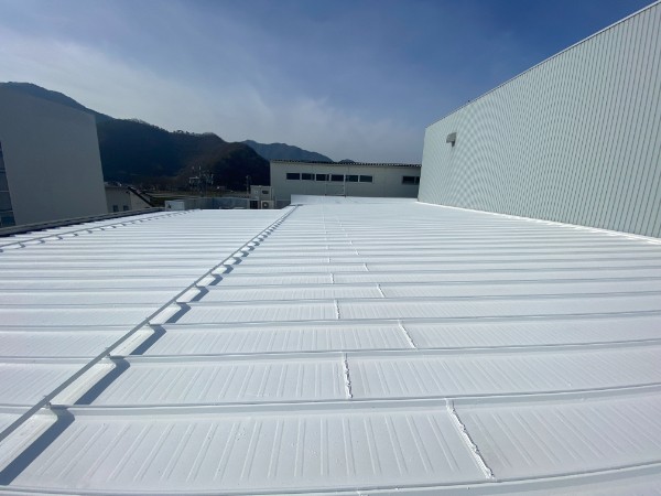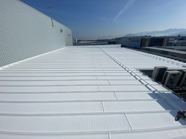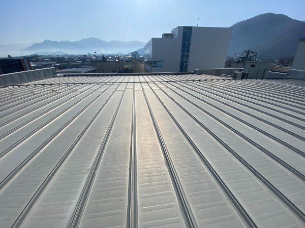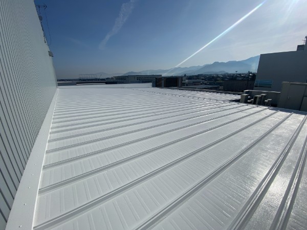 遮熱塗料「クールサーム」を工場・倉庫・事務所などの屋根に施工することで、夏場の強い日射を反射し、屋根表面温度の上昇を抑えます。