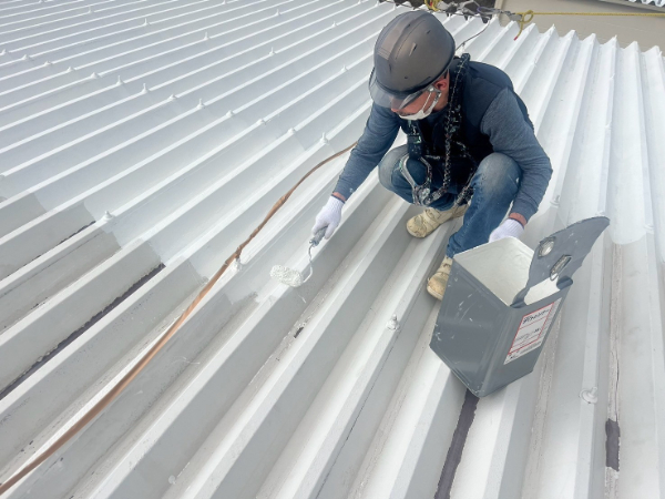 遮熱塗料「クールサーム」を工場・倉庫・事務所の屋根に施工することで、夏場の過酷な太陽熱を反射し、屋根表面温度の上昇を抑えます。これにより、工場・倉庫・事務所内の温度上昇を抑制し、従業員の熱中症リスクを軽減。快適な作業環境を実現できます。