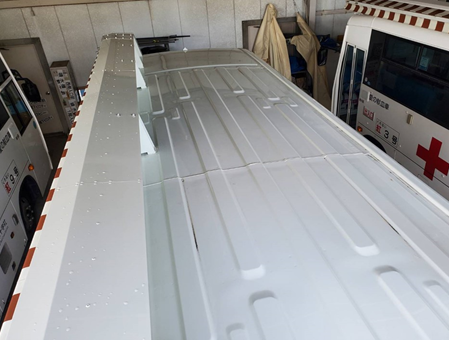 大阪府赤十字献血センター様の検診車のルーフ部分に、遮熱対策として遮熱・断熱塗料「クールサーム」を施工させていただきました。