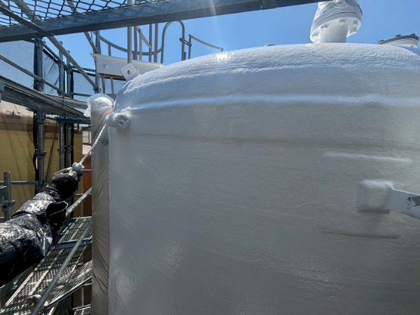 この度、FRPタンクに遮熱・断熱塗料「クールサーム」を施工させていただきました。